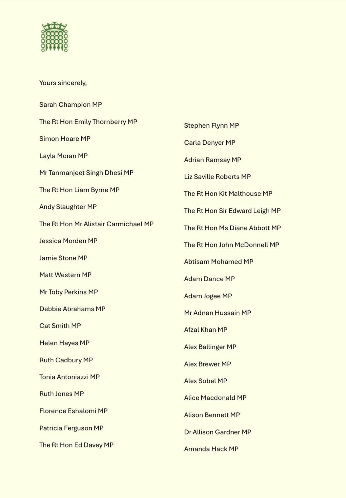 I signed this letter alongside cross-party MPs to call on the UK government to recognise a Palestinian state.